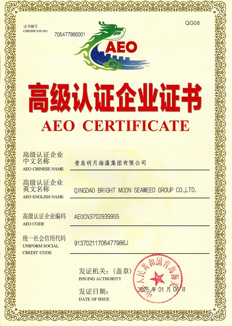 1月3日,明月海藻集团成功通过海关高级认证企业(AEO)