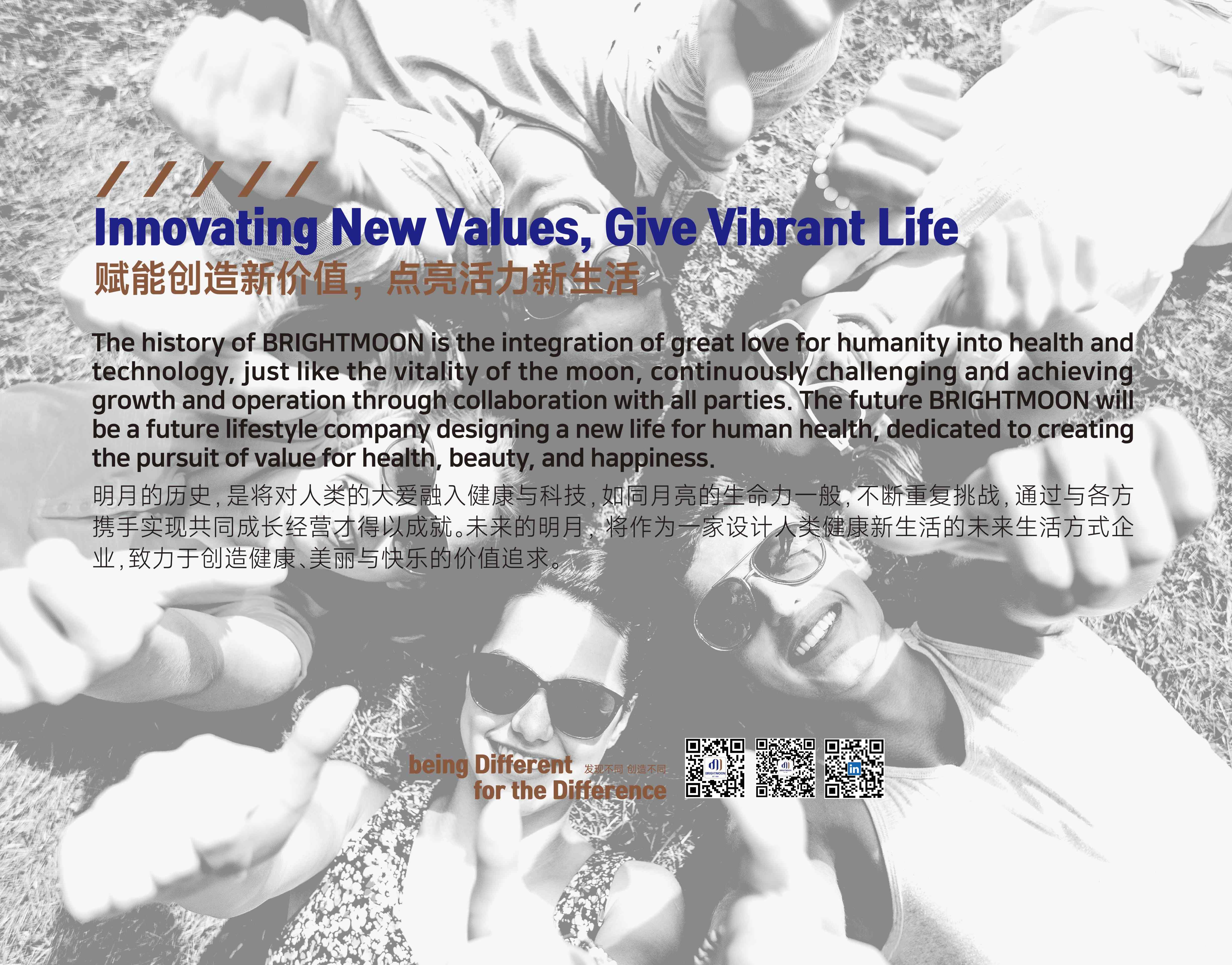 明月始终坚信,企业的成长不仅源于技术与产品,更源于文化的力量。58年的发展历程中,我们不断传承与创新,凝聚出独特的明月精神——以利他与信赖为基础,以创新与融合为驱动,将对人类健康的关注融入每一次技术突破与产品表达之中。“赋能创造新价值,点亮活力新生活”,不仅是使命,更是明月持续前行的内在动力。从海洋出发,我们不仅提供产品,更致力于创造健康、美丽与快乐的价值追求。