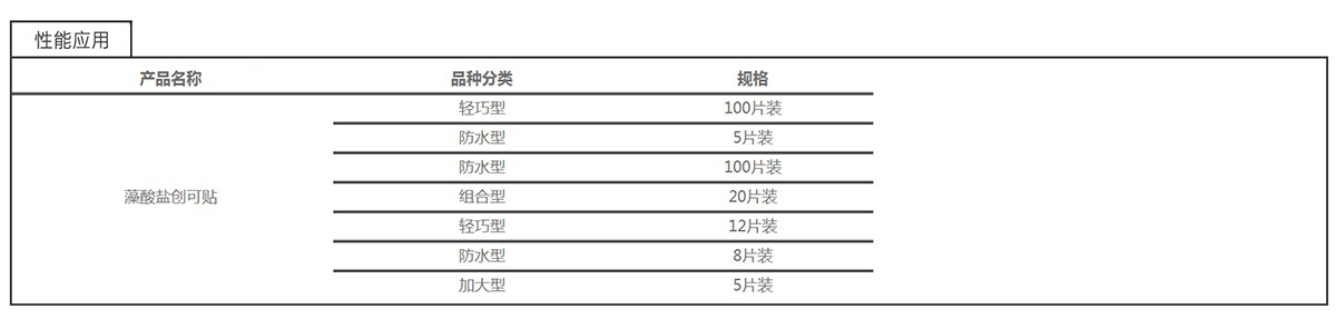 2、藻壳共混创可贴其敷芯是本公司首创的具有完全自主知识产权的伤口护理产品。